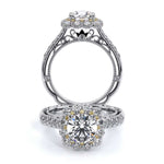 VENETIAN-5080CU engagement ring features an Enchanted diamond cushion Halo with a three layer halo design adding on to the sparkle of the center round diamond. This beauty features graduating round brilliant diamonds on the shank all infused together with