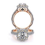 VENETIAN-5080CU engagement ring features an Enchanted diamond cushion Halo with a three layer halo design adding on to the sparkle of the center round diamond. This beauty features graduating round brilliant diamonds on the shank all infused together with