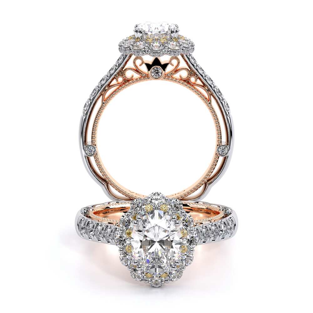 VENETIAN-5080OV engagement ring features an Enchanted diamond Halo with a three layer Oval halo design adding on to the sparkle of the center Oval diamond. This beauty features graduating round brilliant diamonds on the shank all infused together with our