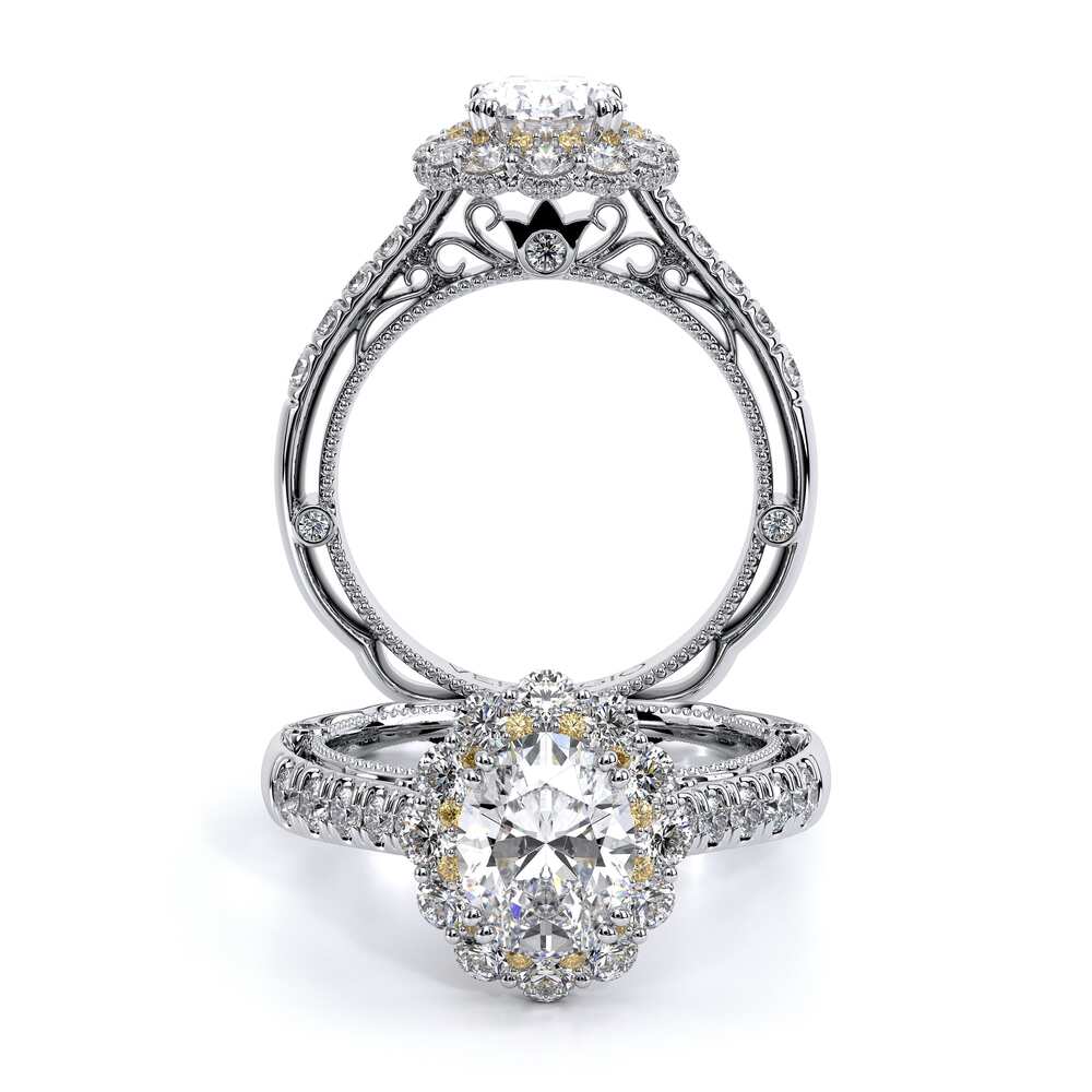 VENETIAN-5080OV engagement ring features an Enchanted diamond Halo with a three layer Oval halo design adding on to the sparkle of the center Oval diamond. This beauty features graduating round brilliant diamonds on the shank all infused together with our