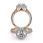 VENETIAN-5080R engagement ring features an Enchanted diamond Halo with a three layer halo design adding on to the sparkle of the center round diamond. This beauty features graduating round brilliant diamonds on the shank all infused together with our hand