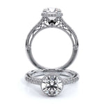 VENETIAN-5081R engagement ring features our Stardust Halo made for an round center seamlessly seated on top of four diamond encrusted prongs. The delicate shank is adorned with graduating round brilliant diamonds. This gorgeous ring stands timeless as is.