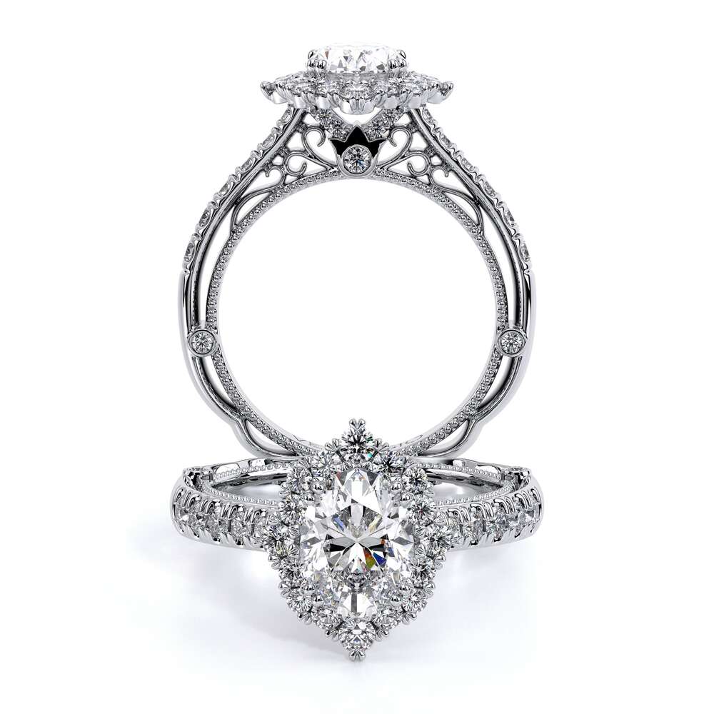 VENETIAN-5083OV engagement ring features our gorgeous Starburst Halo made for a Oval center stone. A straight shank adorned with round brilliant diamonds completes this beauty. Continue the vintage look with a lace shank on the bottom or keep it simple with our classic shank.