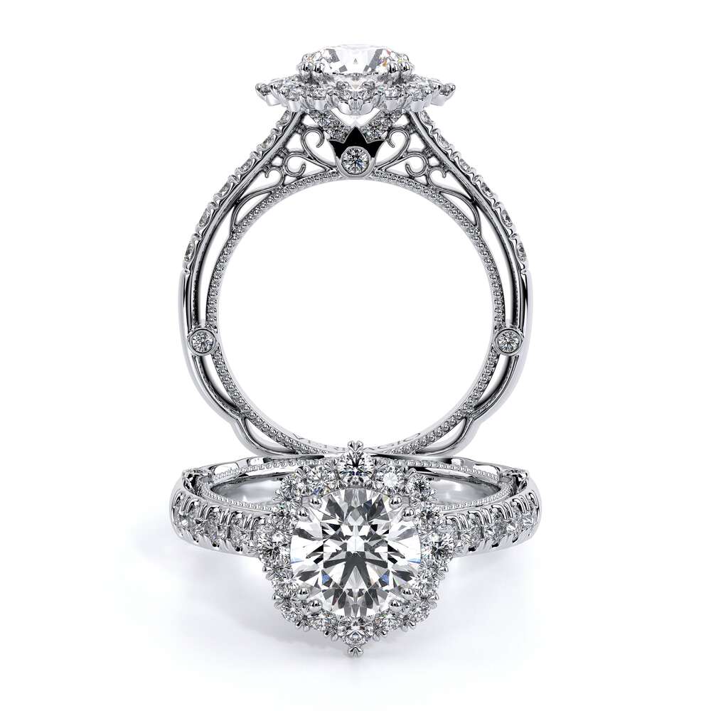 VENETIAN-5083R engagement ring features our gorgeous Starburst Halo made for a round center stone. A straight shank adorned with round brilliant diamonds completes this beauty. Continue the vintage look with a lace shank on the bottom or keep it simple with our classic shank.