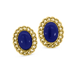 Vintage 14kt Yellow Gold Oval Lapis Lazuli Earrings - Bold Twisted Rope Design
