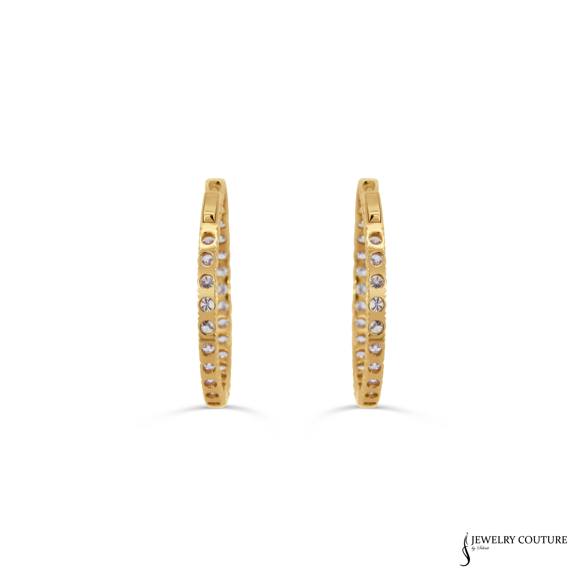 Indulge in the luxurious allure of these exquisite 14KT Yellow Gold Lab Diamond Hoop Earrings. Adorned with a dazzling total of lab-grown diamonds, these hoops effortlessly combine timeless elegance with modern sustainability. The radiant sparkle of the diamonds is beautifully complemented by the warm glow of yellow gold, making them a versatile accessory for any occasion.